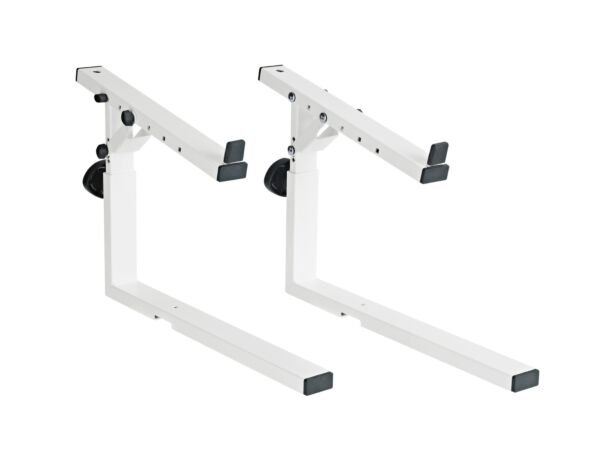 The ideal complement to keyboard stands »Omega-E« 18800, »Omega« 18810 and »Omega Pro« 18820 to use a second keyboard or laptop. Bigger master keyboards can be placed on the large lower support arms. The depth of the upper support arms can be adjusted to 4 positions, so the lower keyboard remains visible. The desired height of the stacker can be set easily and quickly using the spring-loaded clamping knob. 10 different heights allow each user to be able to find a position that best suits his/her needs. To optimize the position the upper support arms can be adjusted in 5 steps from 0° (horizontal) to a 20° angle. Self-adhesive rubber pads ensure that the instrument is not damaged and stays in place. The stacker is also the basis for an extension to a third level. By removing the back cover, the stacker 18822 can be inserted to take a third keyboard.