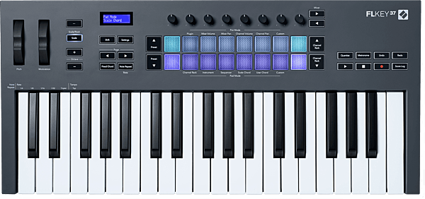 With 37 keys, 16 velocity-sensitive pads, eight customisable pots, and essential transport controls, FLkey 37 puts everything you need right where you need it – so you can stay in the groove.