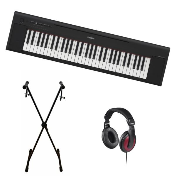 The 61-key keyboard (a conventional piano has 88 keys) is perfect for playing pop tunes or simple classical pieces. Although the keys have the same box shape as those on a piano, the keyboard has a lighter feel that makes it easy for beginning pianists to start, rather than the weightier feel of a standard piano keyboard. You can also use headphones with the NP-15 if you are worried about disturbing those around you with your playing.