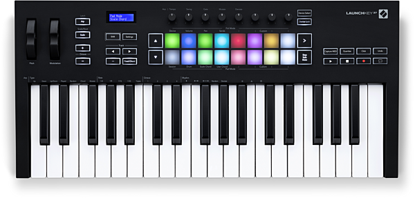 No matter your genre or level of experience, Launchkey 37 gives you everything you need to create intuitively and expressively with Ableton Live. Launchkey 37 features a synth action keybed, velocity sensitive pads, assignable knobs, and essential transport controls.