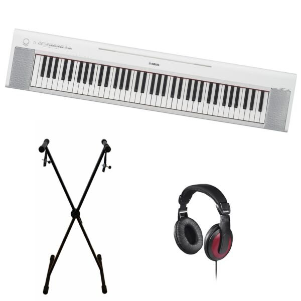 A 76-key keyboard (a conventional piano has 88 keys) that allows you to perform piano pieces with greater authenticity, without requiring much space. Although the keys have the same box shape as those on a piano, the keyboard has a lighter feel that makes it easy for beginning pianists to start, rather than the weightier feel of a standard piano keyboard. You can also use headphones with the NP-35 if you are worried about disturbing those around you with your playing.