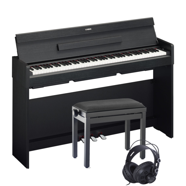 Slim size, 88-key model of the ARIUS digital piano featuring weighted keyboard. With Yamaha's CFX concert grand piano sound as a built-in Voice, experience a rich expressive playing feel with the GHS keyboard. Includes newly equipped ear-friendly functions, and compatibility with Yamaha’s Smart Pianist app. Lid becomes flat tabletop when closed.
